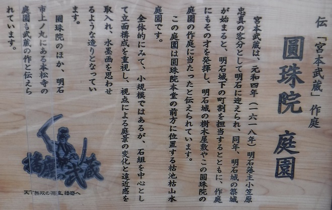 明石で一番古い寺とされ、円珠院には、宮本武蔵が作庭したといわれる枯山水の庭園があります。