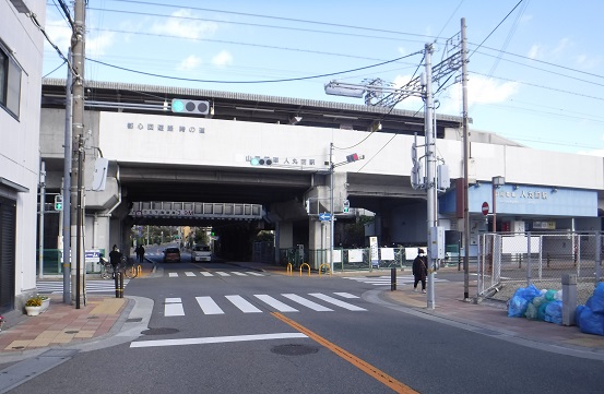 山陽電車とJRの高架を潜って・・