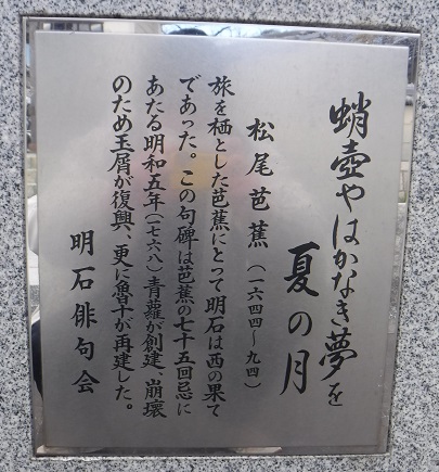 光源氏ゆかりの地で、「明石入道・浜の館」があったとされ、明石入道の碑、「光源氏古跡明石浦の浜の松」の石碑があります。