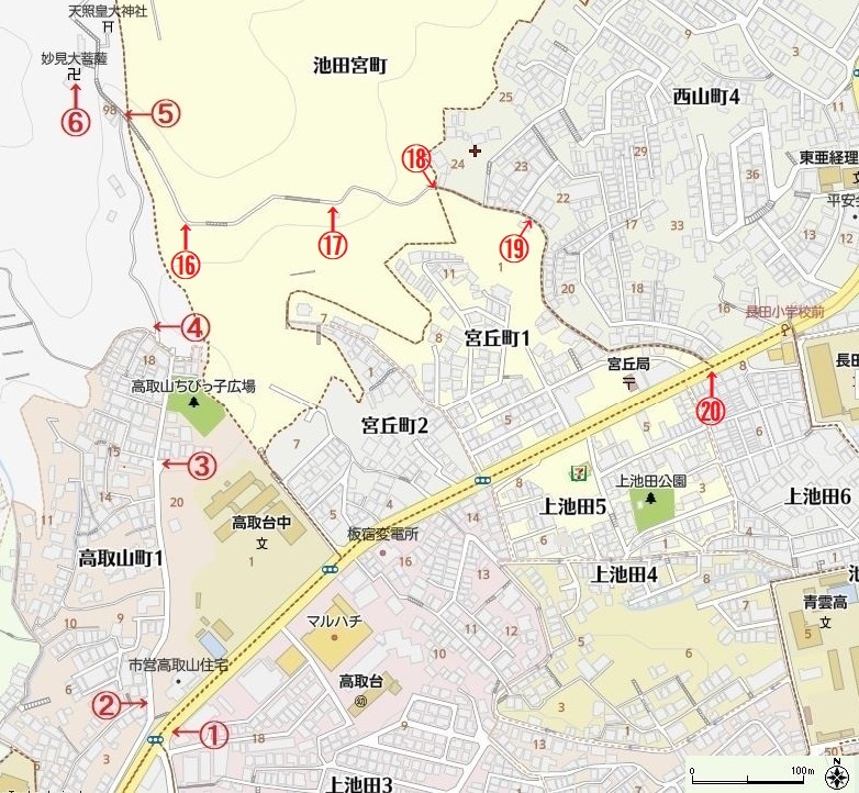 この時は、西の妙法寺方向から登り東側の鵯越方向に下りました。
