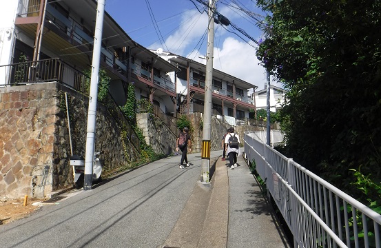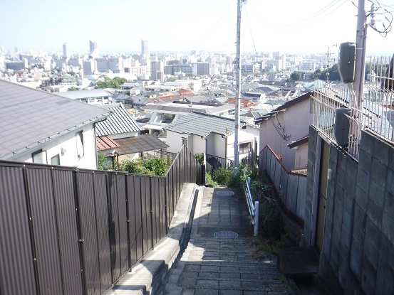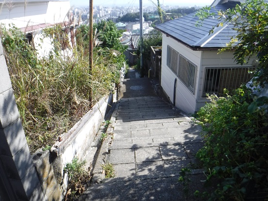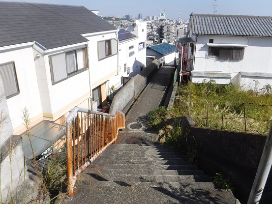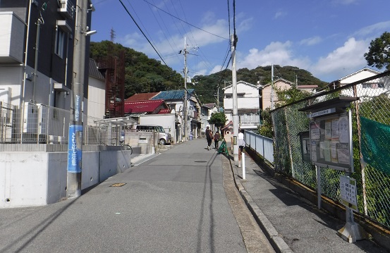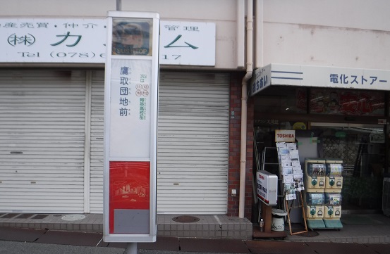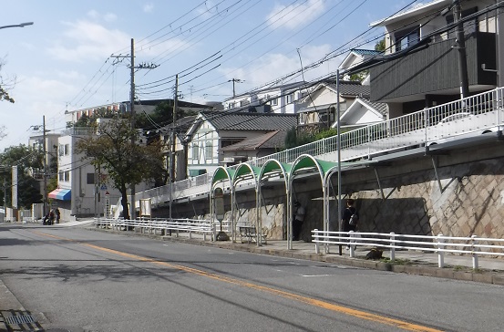 右側には・・鷹取団地バス停に降りる道が見えてます・・