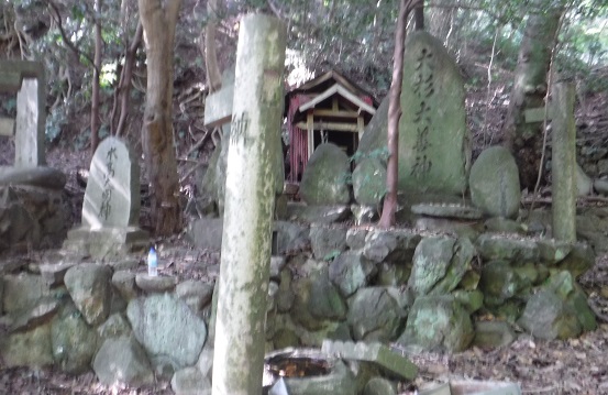 拝殿も本殿も無く沢山の塚や石の碑が並んでいる・・