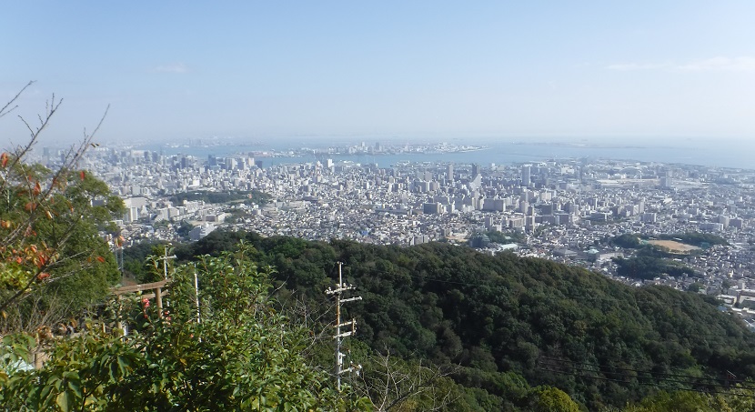 途中のバス停「鷹取団地前」が高取山の登り口です。