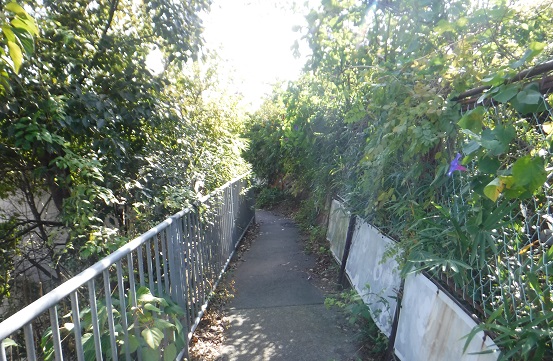 此処を右に行くと・・長田小学校前バス停に通じるらしい・・