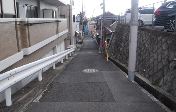 細い道を・・下の道路に・・