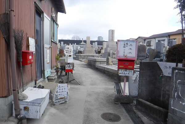 左側に墓地の入口があった